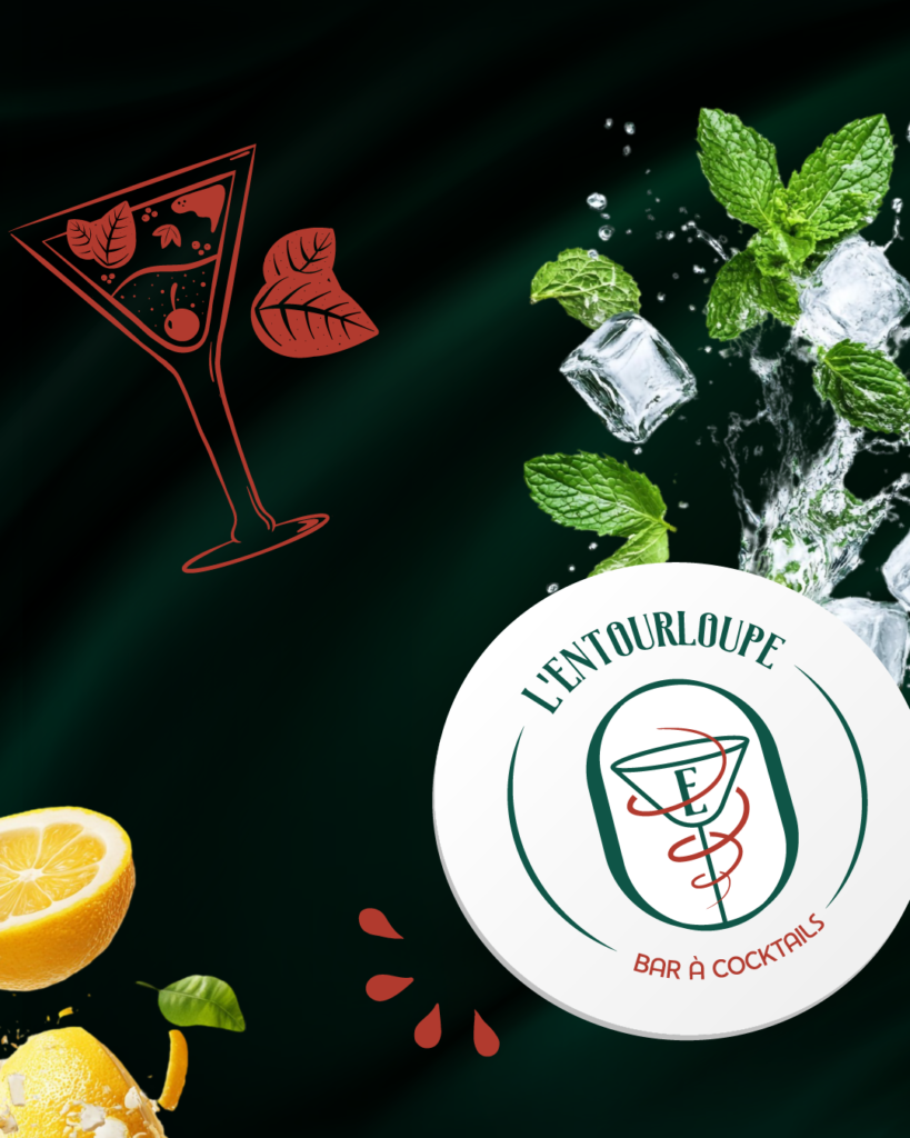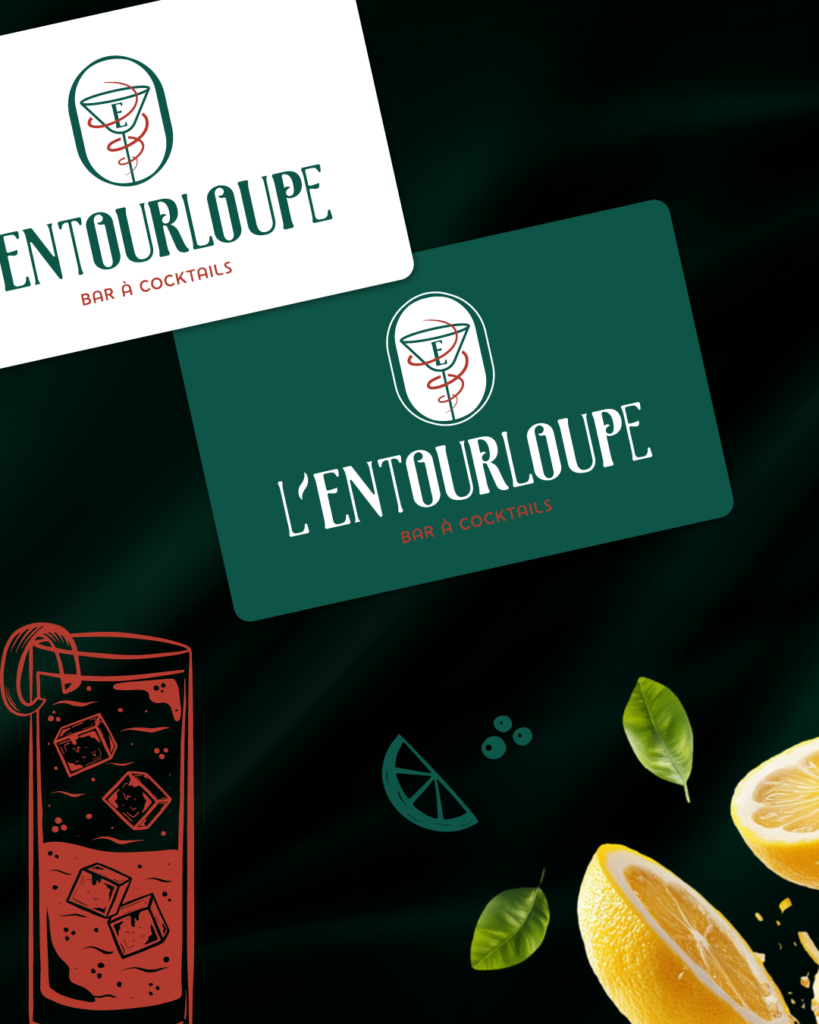 Création de l’identité visuelle de l’Entourloupe, bar à cocktails sur mesure en plein cœur de Dijon.